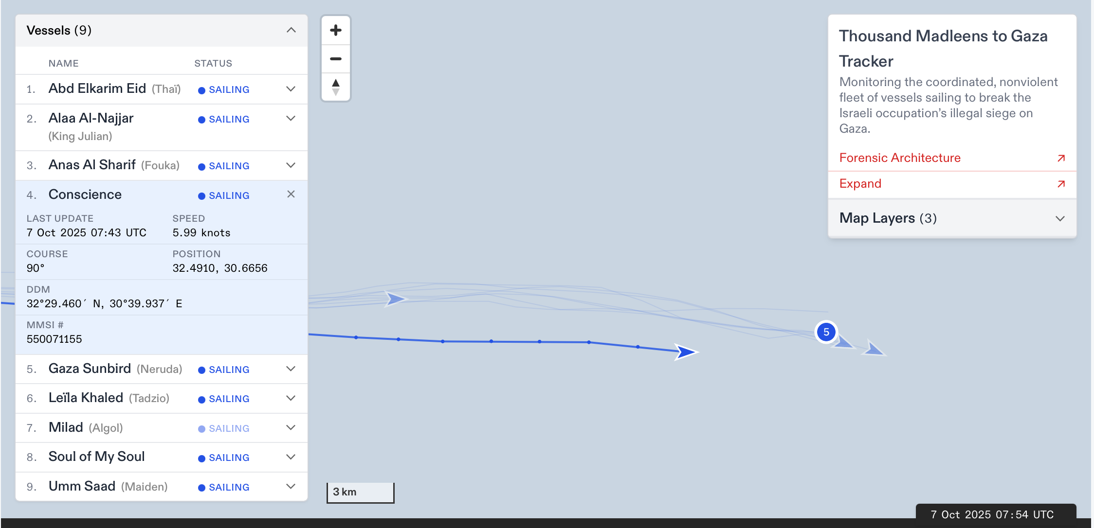 Con un sanitario di Roma facciamo un aggiornamento con la Conscience, la nave ammiraglia della nuova Freedom Flotilla. Si può seguire il viaggio qui https://freedomflotilla.org/ffc-tmtg-conscience-tracker/