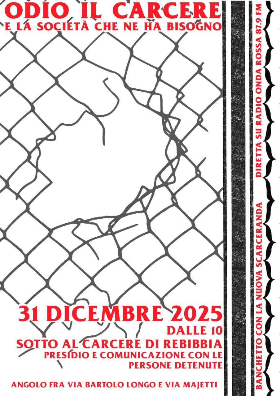Condividiamo alcuni interventi del camion del 31 dicembre durante il presidio davanti al carcere di Rebibbia a Roma. Un percorso collettivo della città e di Radiondarossa che da decenni ormai ci vede tutti i fine anni urlare: Odio il carcere e la società che ne ha bisogno.